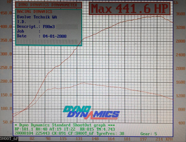 - Vehicle is now producing 441.6hp (324.7kw) at the rear wheels.
